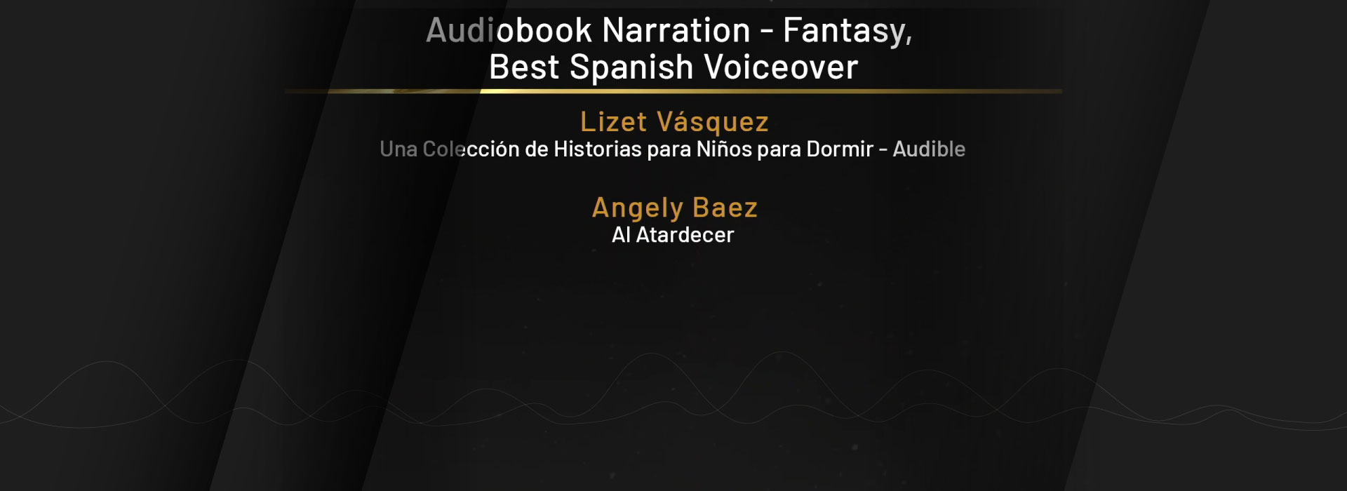 Joan Baker y Rudy Gaskins de la Society of Voice Arts and Sciences (SOVAS) son los talentosos y carismáticos organizadores de este evento de premiación que hace más de 7 años valora y reconoce a las voces de la industria en una maravillosa ceremonia y es un reconocimiento merecido al trabajo de los voiceovers de diferentes países y lenguas. El idioma español no ha sido ajeno a este gran evento. El 2020 me brindó la oportunidad de ser nominada en tres categorías: 1) Mejor Demo de Narración. 2) Mejor Voz de Asistente Virtual. 3) Mejor Narración de Audiolibro Fantasía. Estoy muy agradecida por este reconocimiento a los miembros del jurado y a la organización SOVAS por permitir esta gran satisfacción en mi carrera como voiceover. En el contexto de pandemia, el evento fue realizado en el New World Stages en Nueva York y transmitido vía streaming.
